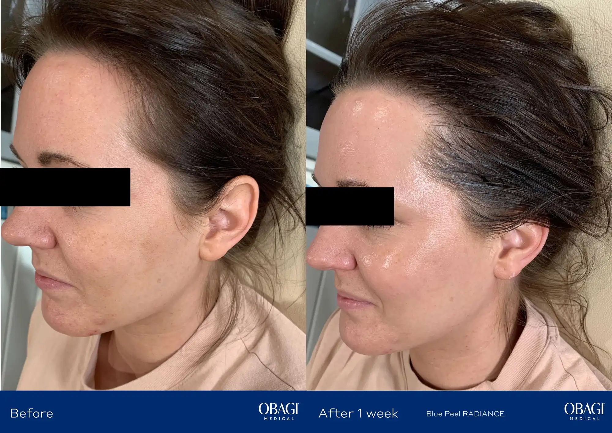 | Obagi® Blue Peel Radiance | Pigmentation, Breakouts, Sun damage | Salicylic Acid, Glycolic Acid, Lactic acid | Mild flaking (2–3 days) | Clearer, refined, more radiant tone | Every 4 weeks, Course of 4–6 |