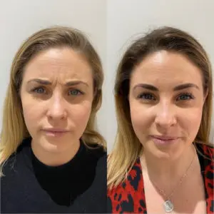 Anti-wrinkle injections to treat strong static frown lines