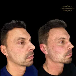 Performed using high density dermal fillers to create a more masculinised jawline and mid face.