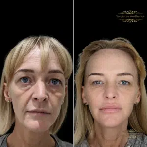 Peri-orbital rejuvenation with tear trough and cheek filler Total 5ml over 12 months
