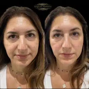 Before and after cheek filler treatment to restore volume and contour the mid face.